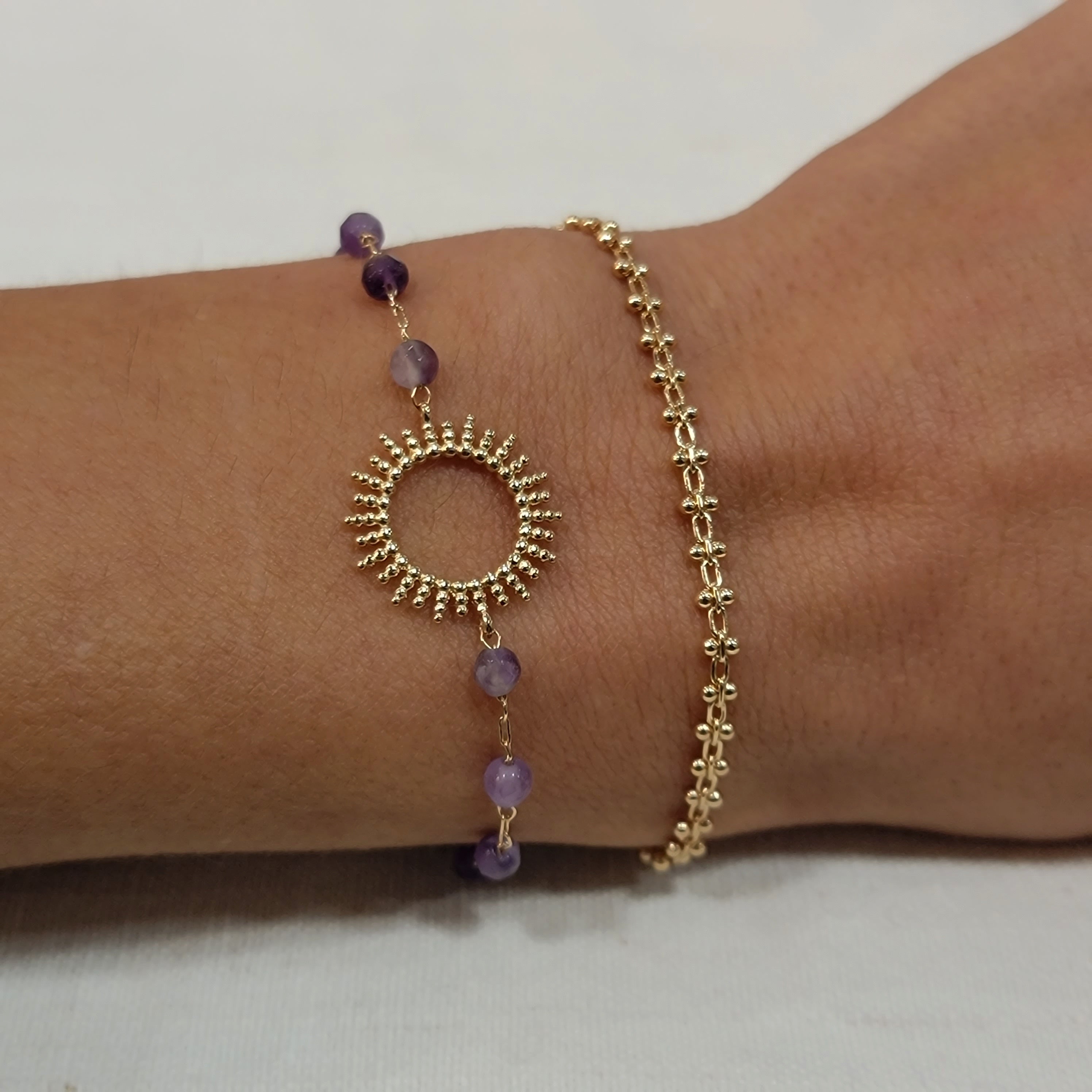 3 MICRONS 18K GOLD PLATED SUN BRACELET WITH NATURAL STONES